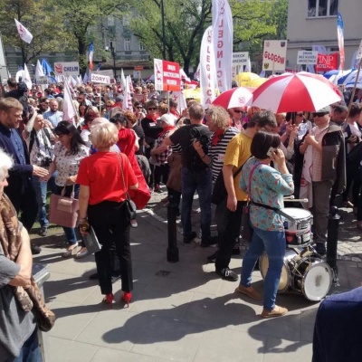 Ponad 5 tysięcy manifestantów - nauczycieli, rodziców i samorządowców - domagało się pod Ministerstwem Edukacji Narodowej godnych wynagrodzeń oraz dymisji Minister Edukacji Narodowej Anny Zalewskiej, która zdaniem protestujących szkodzi polskiej edukacji.
