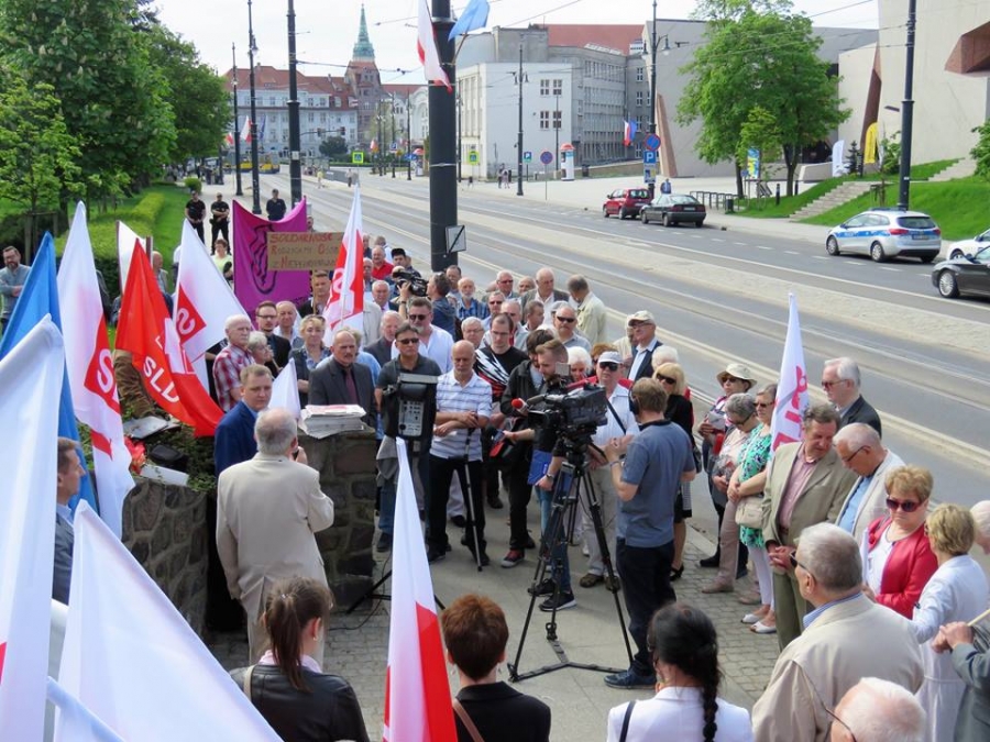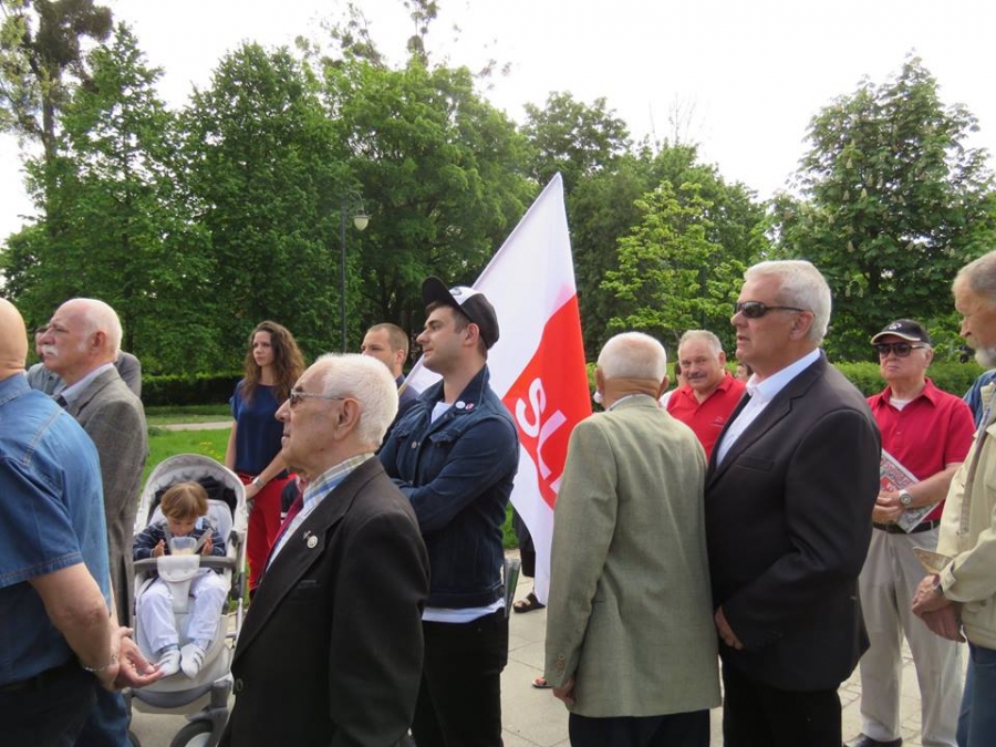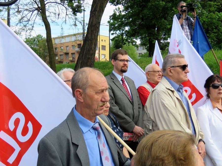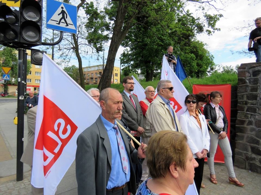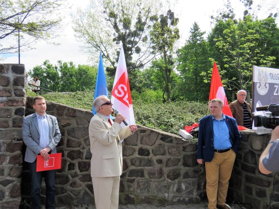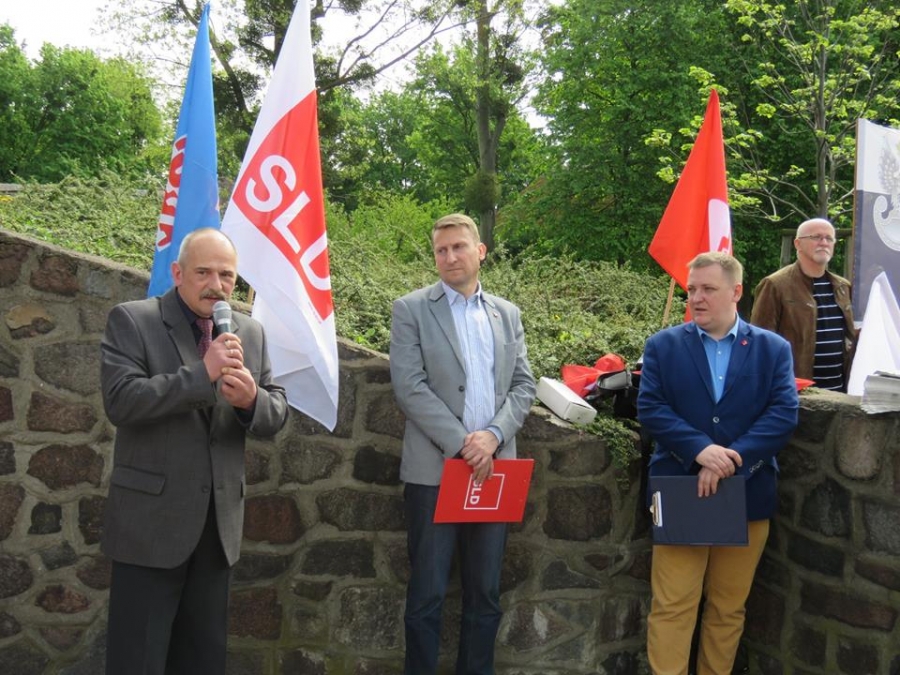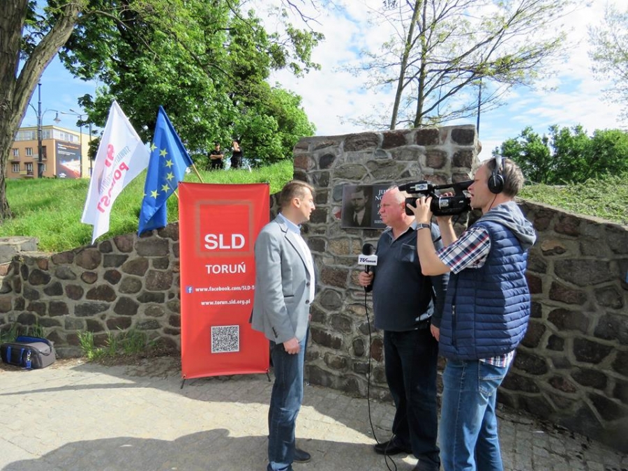 Tradycyjnie z okazji Święta Pracy w Toruniu odbył się dzisiaj okolicznościowy wiec. W miejscu gdzie do niedawna wisiała tablica upamiętniająca Juliana Nowickiego zebrani wysłuchali okolicznościowych przemówień. Podkreślano w nich głównie obecną sytuację, w której znaleźli się emerytowani funkcjonariusze służb mundurowych oraz nauczyciele po reformie oświaty. Poruszano także kwestie praw kobiet i godnego funkcjonowania osób niepełnosprawnych oraz ich rodzin. Na zakończenie podkreślono wartości, którymi kieruje się dzisiejsza lewica, a które to są zbieżne z tymi, będącymi fundamentem zjednoczonej Europy. Dziękujemy wszystkim za przybycie. Członkom i sympatykom SLD, przedstawicielom służb mundurowych i wojska, delegacji ZNP oraz środowisk broniących praw kobiet. Przede wszystkim jednak, dziękujemy przybyłym mieszkańcom Torunia, którzy mimo dzielących nas różnic przybyli by wspólnie domagać się poszanowania godności, praw pracowniczych i praw człowieka z prawami kobiet i osób niepełnosprawnych w szczególności. Dziękujemy, w imieniu organizatorów - szef SLD w Toruniu i powiecie toruńskom Marek Jopp. Zdjęcia - Dawid Podlewski.