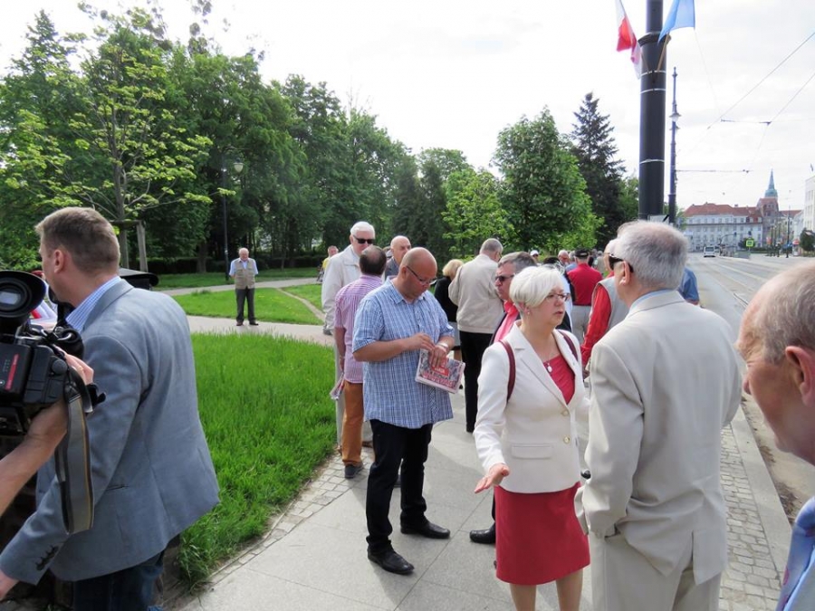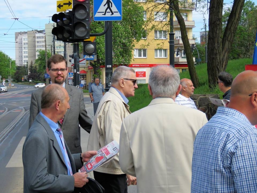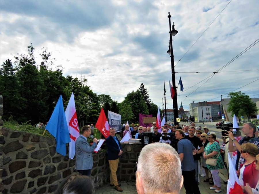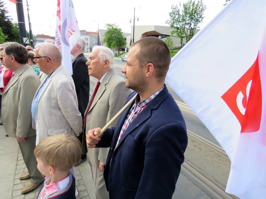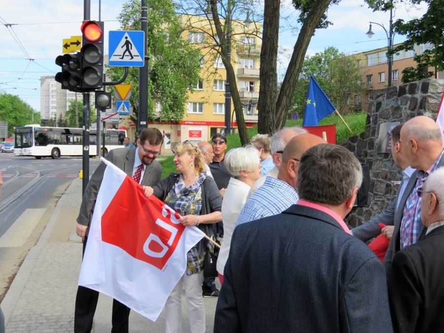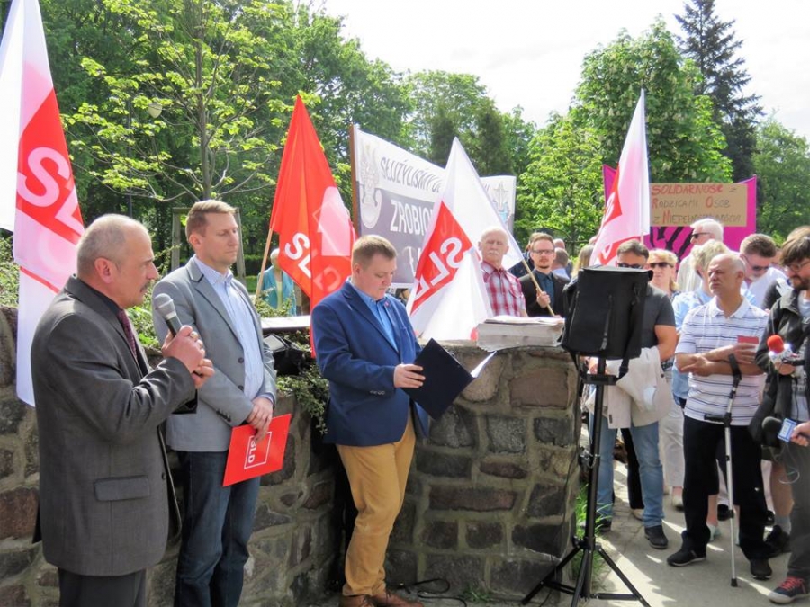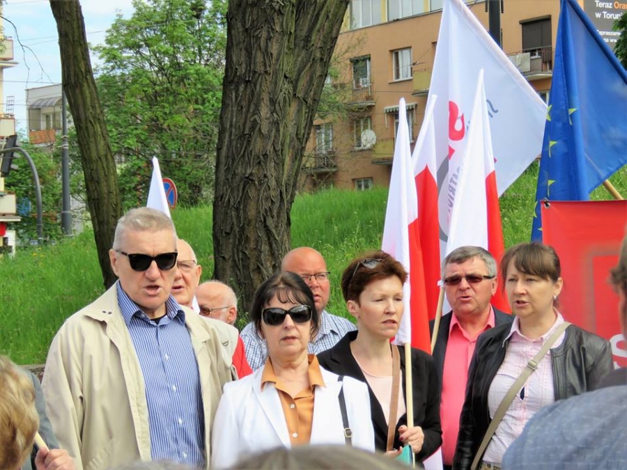 Tradycyjnie z okazji Święta Pracy w Toruniu odbył się dzisiaj okolicznościowy wiec. W miejscu gdzie do niedawna wisiała tablica upamiętniająca Juliana Nowickiego zebrani wysłuchali okolicznościowych przemówień. Podkreślano w nich głównie obecną sytuację, w której znaleźli się emerytowani funkcjonariusze służb mundurowych oraz nauczyciele po reformie oświaty. Poruszano także kwestie praw kobiet i godnego funkcjonowania osób niepełnosprawnych oraz ich rodzin. Na zakończenie podkreślono wartości, którymi kieruje się dzisiejsza lewica, a które to są zbieżne z tymi, będącymi fundamentem zjednoczonej Europy. Dziękujemy wszystkim za przybycie. Członkom i sympatykom SLD, przedstawicielom służb mundurowych i wojska, delegacji ZNP oraz środowisk broniących praw kobiet. Przede wszystkim jednak, dziękujemy przybyłym mieszkańcom Torunia, którzy mimo dzielących nas różnic przybyli by wspólnie domagać się poszanowania godności, praw pracowniczych i praw człowieka z prawami kobiet i osób niepełnosprawnych w szczególności. Dziękujemy, w imieniu organizatorów - szef SLD w Toruniu i powiecie toruńskom Marek Jopp. Zdjęcia - Dawid Podlewski.